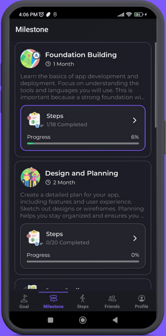 Your goal is mapped, your path is clear, and milestones with tasks are ready to guide you all the way.